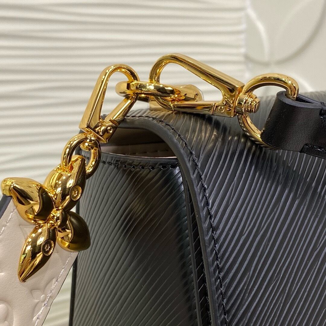 -エンボス加工で施した畝が特徴のエピ・レザーで仕立てた「ツイスト MM」。ストラップにはモノグラム・パターンを刻印した取外し可能なミラーが付いています。プレシャスなモノグラム・フラワーのフックでバッグに取付けられるのも魅力。ストラップとLV ツイストロックの両方にモノグラム・パターンがあしらわれています。
