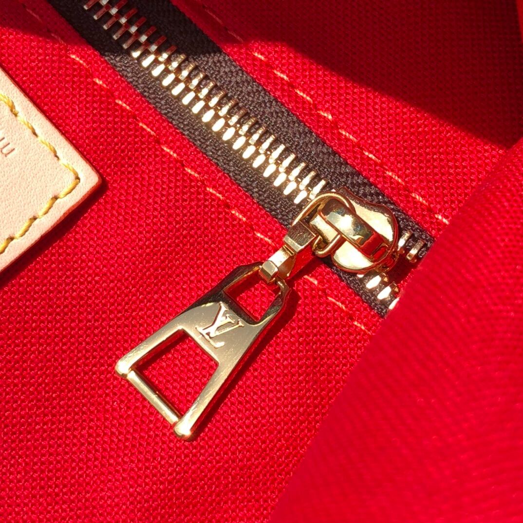1968年に発表されたアイコニックな「サック・プラ」をファッショナブルな小ぶりなサイズに再解釈した「サックプラ BB」。モノグラム・キャンバスにヌメ革のトリミングを施しました。モノグラム・パターンで仕上げた取外し可能なストラップと、ロール仕上げのレザーハンドルを備えています。「Louis Vuitton」のパッチをあしらったライニングのレッドのテキスタイルと、ファスナー付きポケットも魅力です。