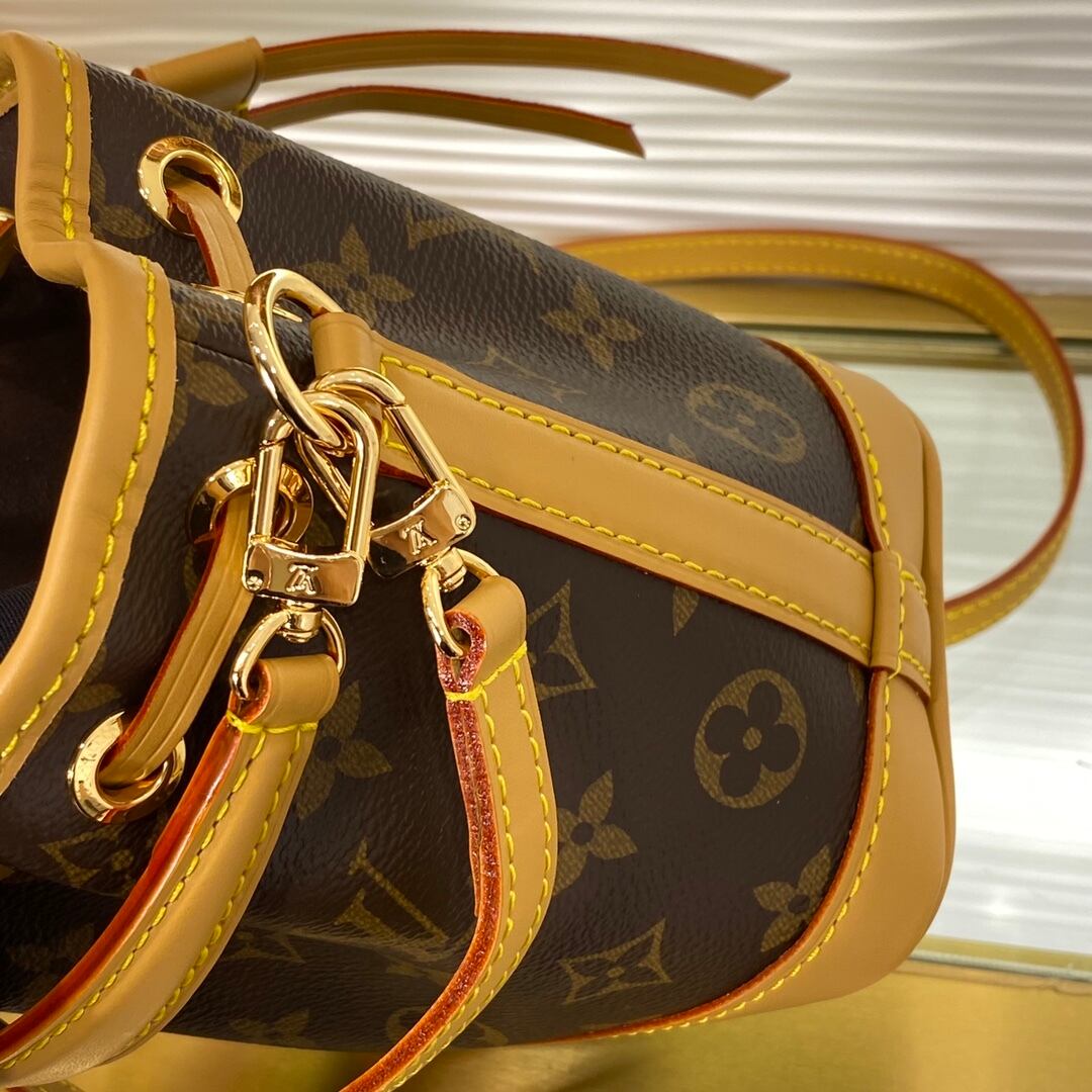 1932年に誕生したアイコンバッグ「ノエ」を、ミニチュア版に仕上げた「ナノ・ノエ」。モノグラム・キャンバスにヌメ革のトリミングを施し、伝統と現代的な機能性を組み合わせた小ぶりなバッグです。取外し可能なハンドルと、取外し & 調節可能なストラップで、さまざまな持ち方をお楽しみいただけます。鍵やカードケース、スマートフォンなどの必需品を持ち運ぶのに充分な収納力も魅力。